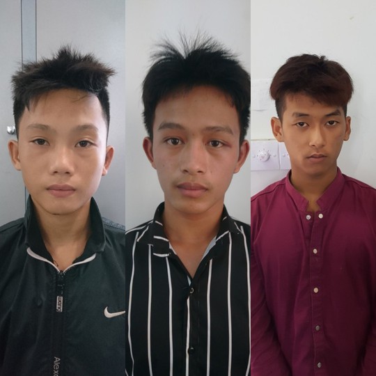 Từ trái qua, đối tượng Tân, Hải và Bình tại cơ quan điều tra